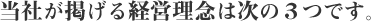 これは単に「幸せな人を見ているとこちらも嬉しくなる」ということではありません。「自分の力で人を幸せにする」つまり「人の幸せに自分が貢献する」ということを経験することによって、自分の存在意義、生きている意味を実感し、 結果、幸せを感じる、ということです。 私たちは、当社の事業を通して、常にこの「幸せ」を感じ続けていきたいと考えます。